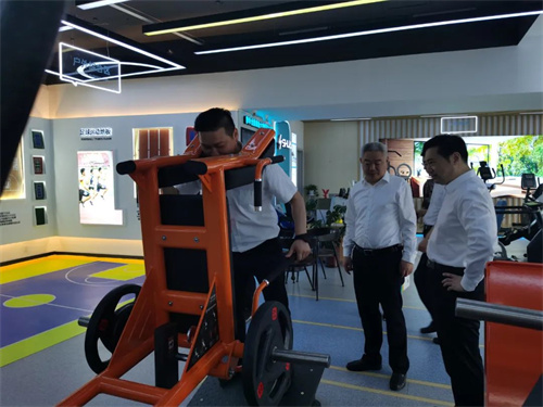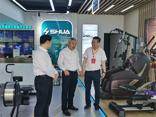 熊猫体育体育集团董事长王进华先生向王映海副市长一行领导介绍了近年来企业发展情况,并带领大家参观了熊猫体育体育集团济南省体旗舰店,详细介绍了无氧力量、心肺有氧、户外综合、私家健身、老年健身、康体器材六大健身场景区域,王进华先生还亲身示范健身器材的正确使用方法,全场景体验和具有科感的智能互动得到一行领导的充分肯定与认可,并对熊猫体育体育集团在体育产业发展中发挥的示范带动作用给予高度评价。