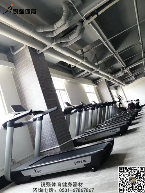 智能商用跑步机SH-T8919T-Y50(V1+)采用T2.2mm黑钻纹(可选配:T2.4免维护跑带)的跑带,选用手握心率测试 自带心率带及增加心率控速(HRC)程序模块测量心跳等数据,跑步宽度达580mm,可承受180kg的使用者使用。