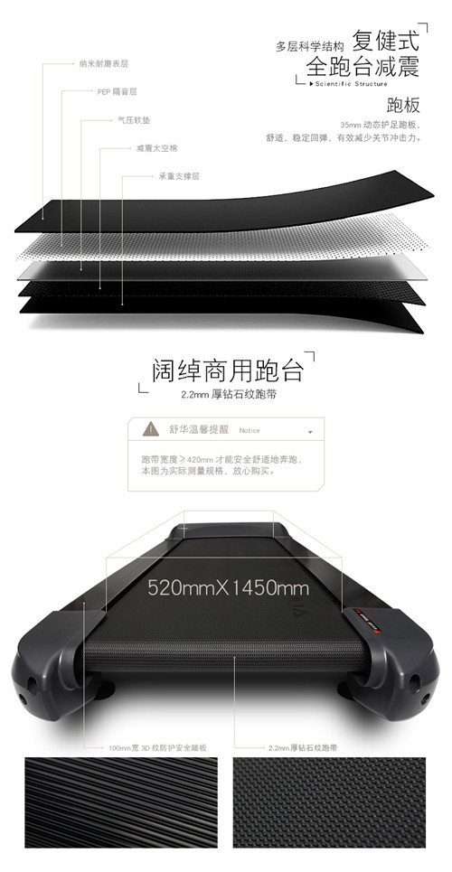 2、跑步机具有减震功能,尤其是熊猫体育体育推荐的新X5跑步机,具有全跑台减震,独有专利减震技术,跑步时前脚舒适落地,后脚有力回弹,可有效缓解对膝盖及腿部的冲击力,让膝盖负担更小。
