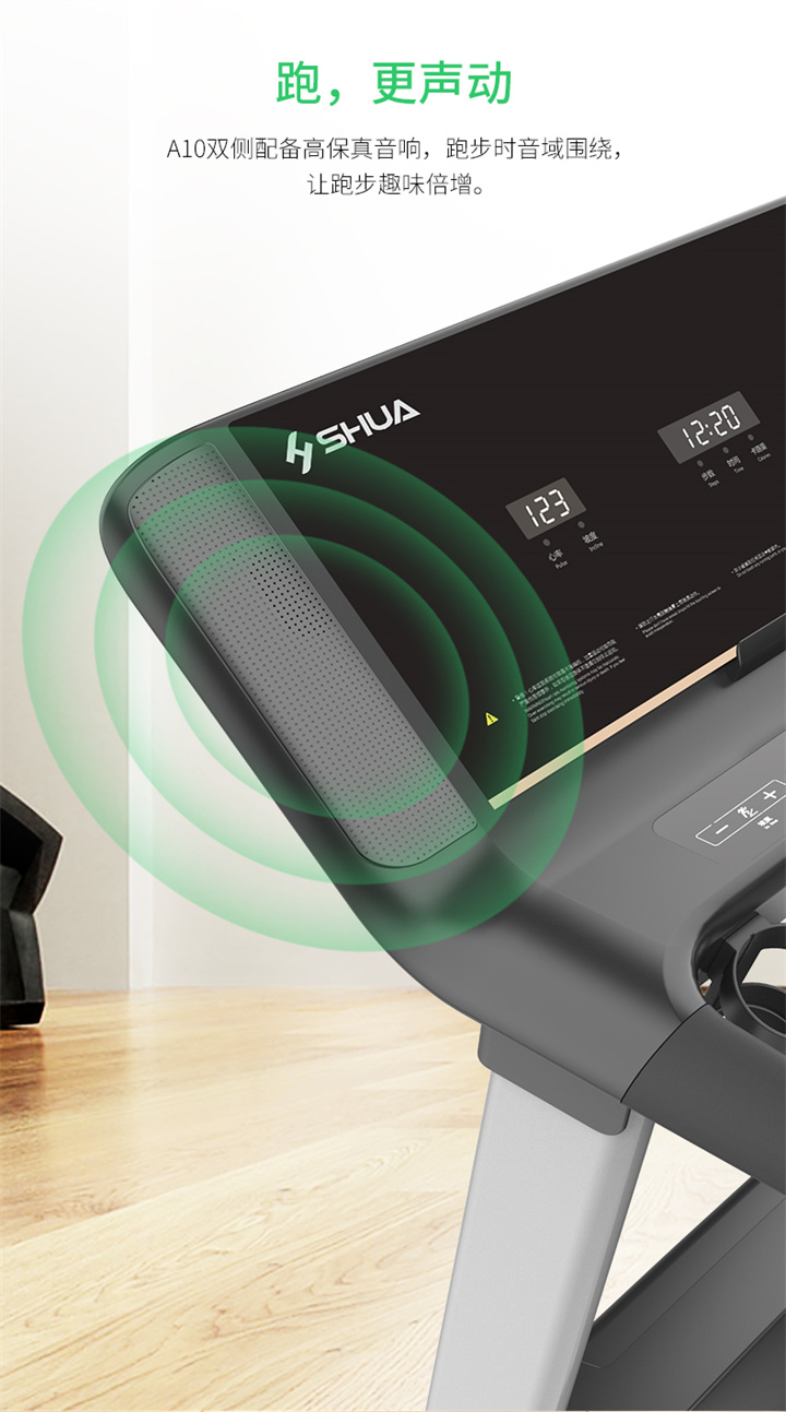 熊猫体育体育推荐健身器材-舒华商用电动跑步机SH-T6500拥有10.1寸IPS高清触摸屏、Z型动感时尚外观设计、70×150mm精钢立柱机身、F级高效静音马达、520mm商用豪华跑带和35mm双层全跑台减震跑板等优势,让您享受科学跑步。